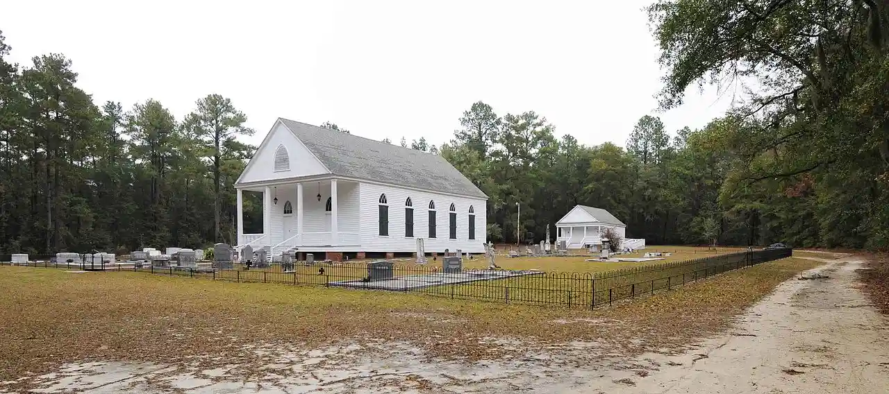 Mizpah Methodist Church is a historic Methodist church located near Olar, Bamberg County, South Carolina. It was built in 1856, and is a frame church sheathed in weatherboard and includes Greek Revival and Gothic Revival architectural elements. Surrounding the church is the church cemetery, which contains gravestones and iron Maltese cross markers for a number of Confederate veterans. Read more on Wikipedia
