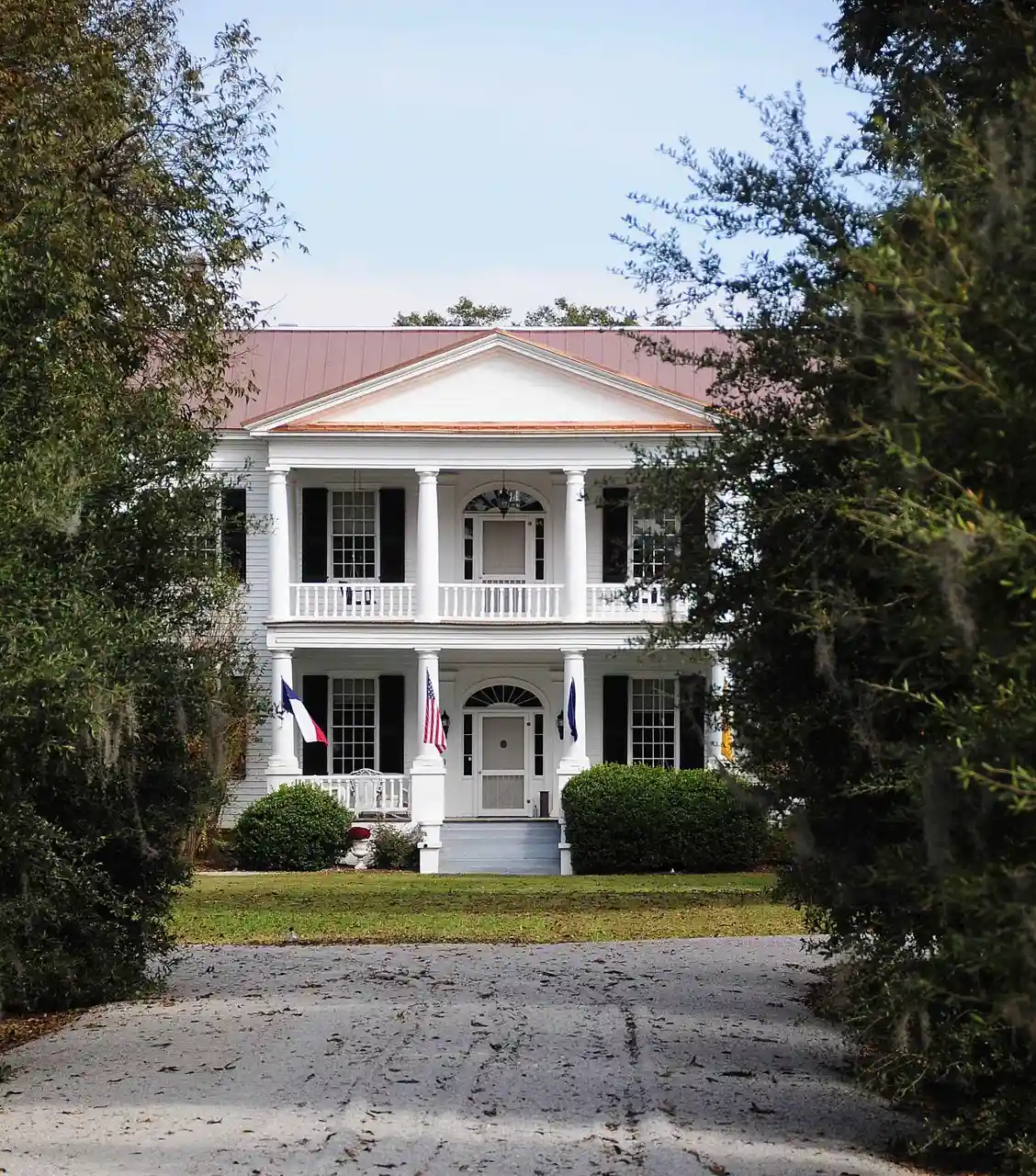 Midway Plantation is a historic plantation house located near Fort Motte, Calhoun County, South Carolina. The original Midway plantation was built about 1785, although little of this structure remains. The present façade was added about 1859, and is a two-story antebellum frame building with both Greek Revival and Federal influences. The front façade features a pediment and a two-tiered portico with four Tuscan order columns on both levels. The rear wing and porch were added around 1900. Read more on Wikipedia