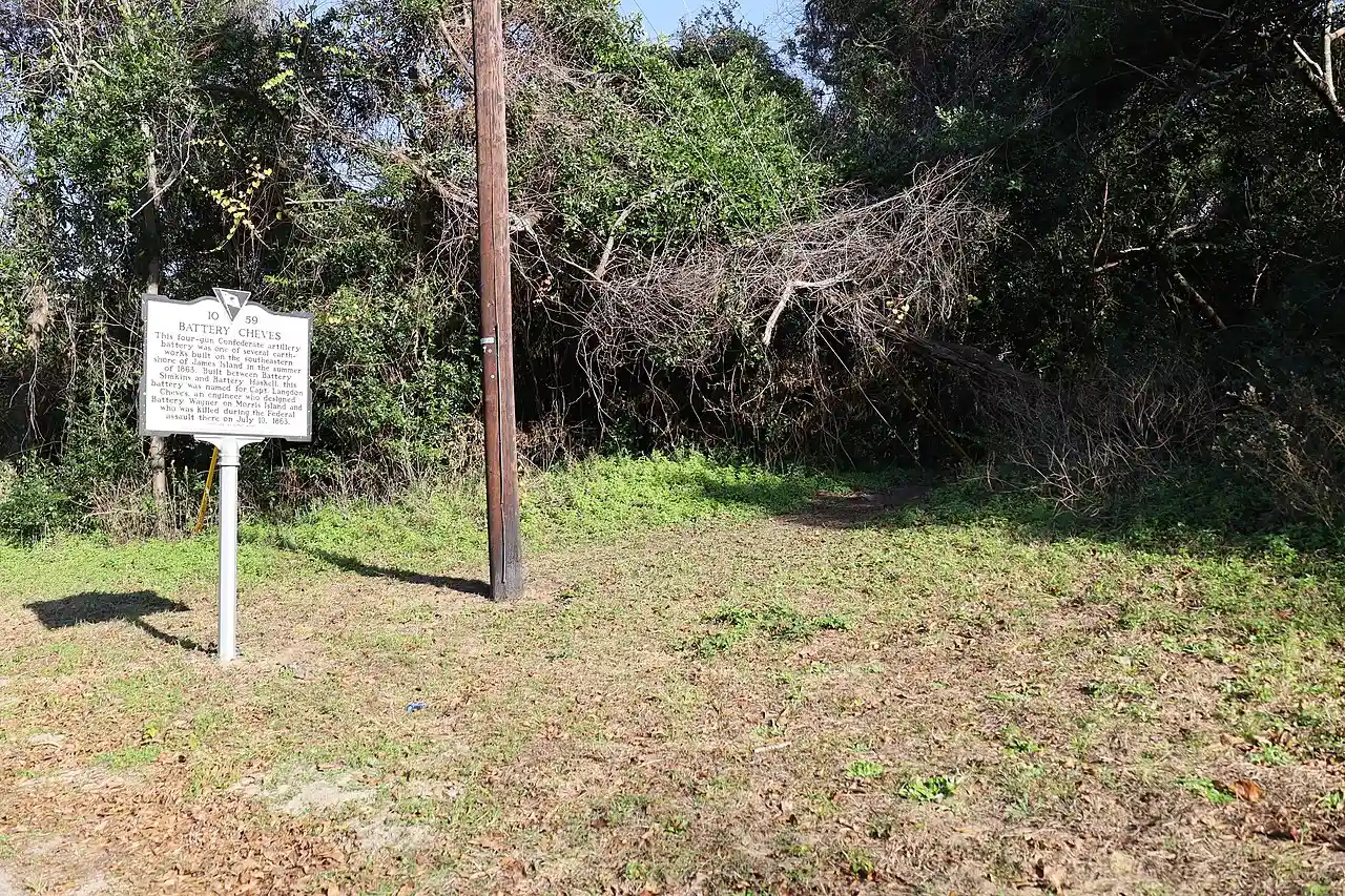 Battery Cheves is a historic artillery battery located at James Island, Charleston, South Carolina. It was built in 1863, and designed to protect the area between Fort Johnson and Battery Haskell. At the end of the war this battery mounted two pieces of heavy artillery. The earthen redoubt measures approximately 280 feet long and 240 feet deep. It has a 12-foot, 6 inch, high parapet wall and a powder magazine about 15 feet in height. Read more on Wikipedia