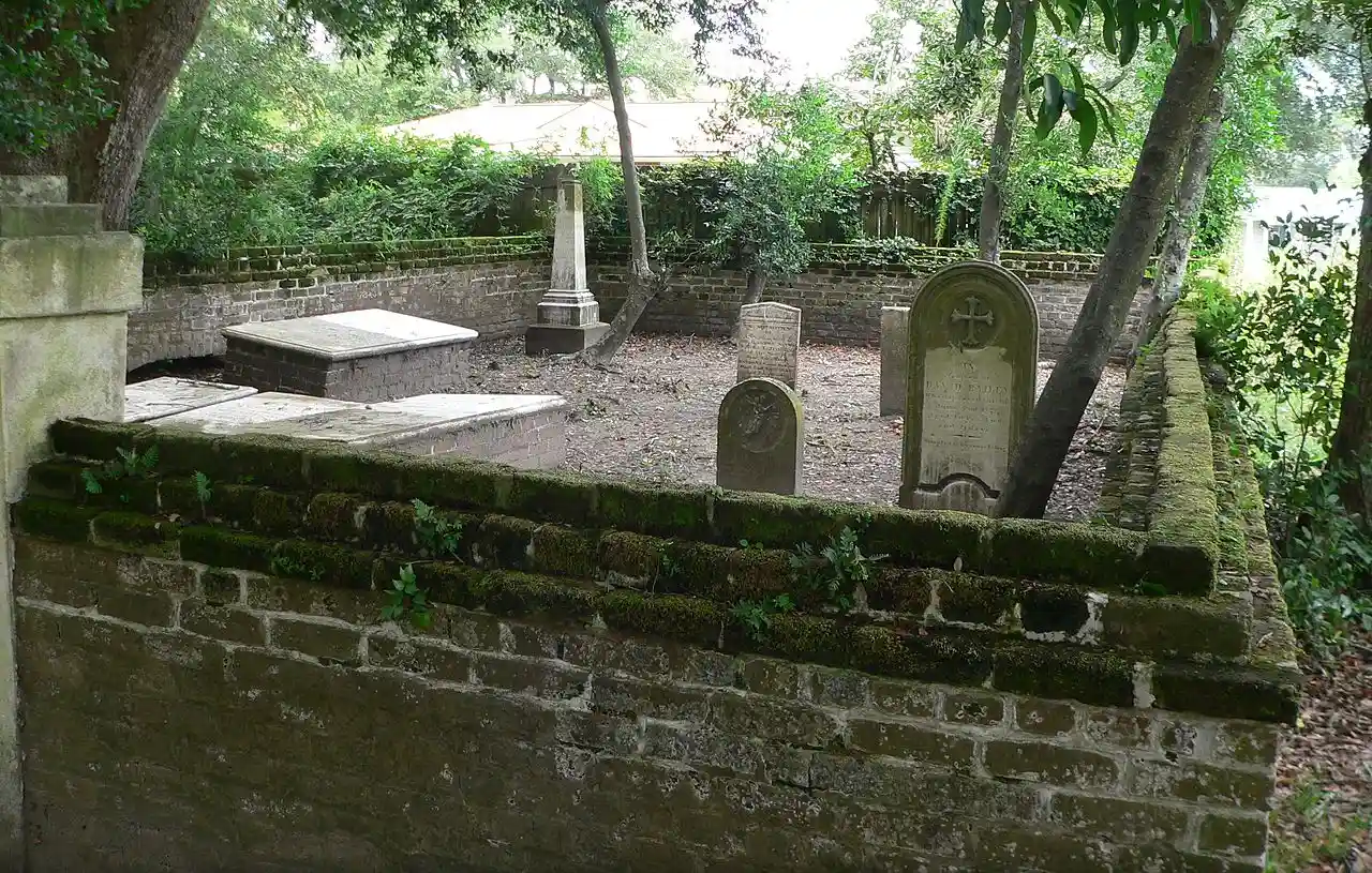 Lucas Family Cemetery is a historic plantation cemetery located near Mount Pleasant, Charleston County, South Carolina. It was established in 1825, and the walled plot includes several grave markers signed by Charleston carvers. Eleven gravemarkers remain, dating from 1825 to 1892, and five are brick box tombs with slab or table tops. The cemetery is significant for being a rare example of traditional family cemetery arrangement in the lowcountry. Read more on Wikipedia