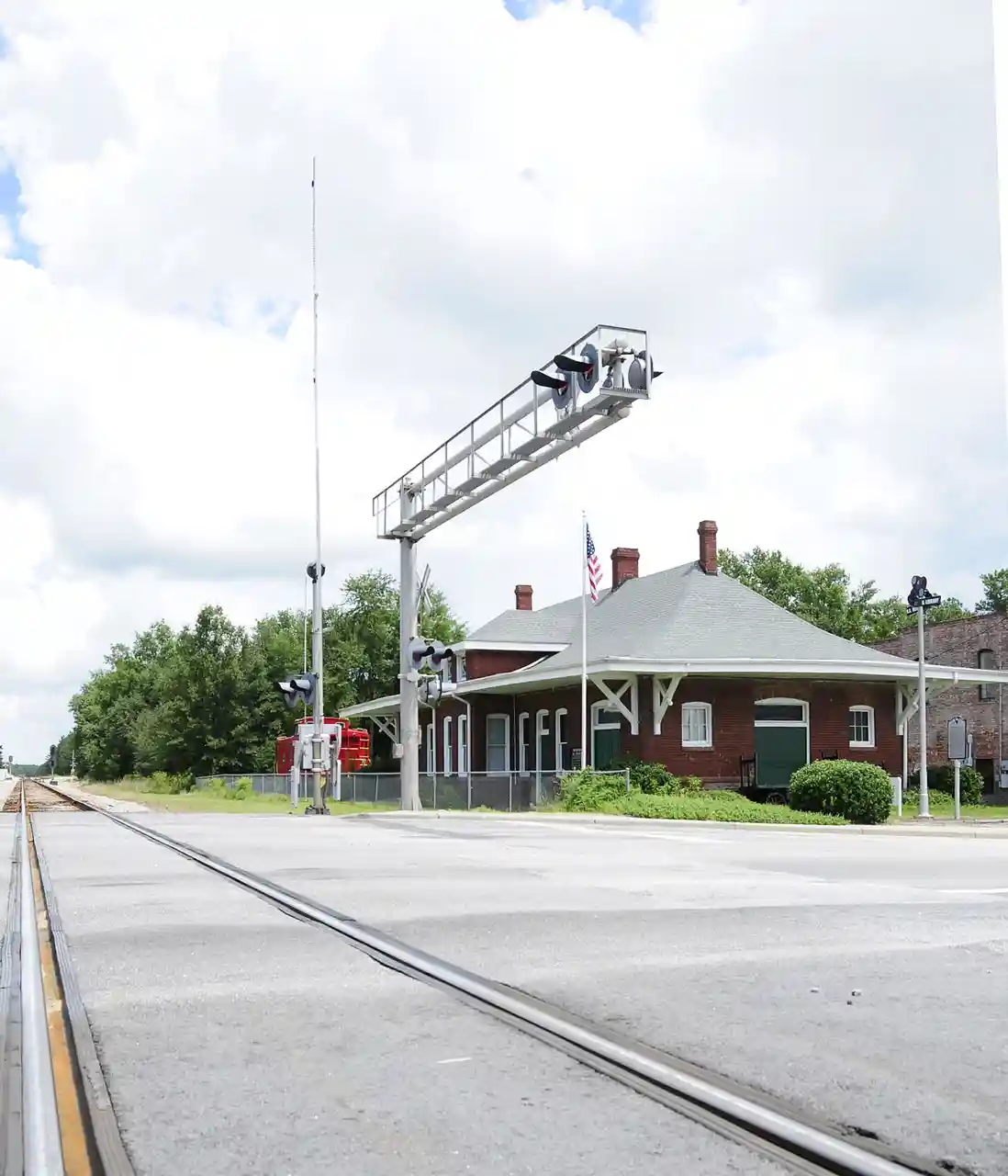 Seaboard Air Line Railway Depot in McBee is a historic train station located at McBee, Chesterfield County, South Carolina. It was built in 1914, and is a one-story, red brick building in a modified rectangular plan. It has a sharply pitched hipped roof. After Seaboard discontinued passenger service in the 1960s, the McBee depot stood unused until the 1980s when the building was restored for use as the McBee Depot Library and Railroad Museum. Read more on Wikipedia