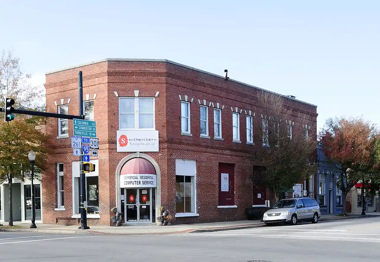 Manning Commercial Historic District is a national historic district located at Manning, Clarendon County, South Carolina. The district encompasses 46 contributing buildings and 1 contributing object in the central business district of Manning, county seat for Clarendon County. Manning's downtown is dominated by its 1909 Neo-Classical, red brick courthouse set at the center of a landscaped courthouse square. The commercial district is characterized by one- and two-part commercial block buildings, many of them brick, that were constructed during the late-19th and early-20th century. The buildings are characterized by oblique and angled entrances, intriguing decorative cornices and corbeling, and a preponderance of parapeted rooflines give the Manning Commercial Historic District a clear and unmistakable association with the architecture typical of the early-20th century. In addition to the courthouse, other notable buildings include the U.S. Post Office and Federal Building, Coffey-Rigby Livery Stable, Clarendon Furniture Store, Leonard Building, Manning Hotel, Brailsford Grocery / Schwartz Building, Cut Rate Drug Store, and Pure Oil Service Station. and Accompanying map Read more on Wikipedia