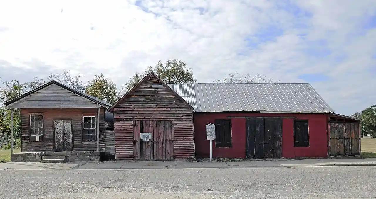 Senn's Grist Mill-Blacksmith Shop-Orange Crush Bottling Plant is a complex of historic commercial buildings located at Summerton, Clarendon County, South Carolina. The complex consists of three interconnected early-20th century buildings of similar size and construction. The grist mill was built about 1905, is an example of small independent grist mills that were commonplace in rural communities across the South. The blacksmith shop and bottling plant, built about 1921, are typical of early-20th century light industrial buildings. The complex supplied the local agricultural sector with essential goods and services for nearly a century. Read more on Wikipedia