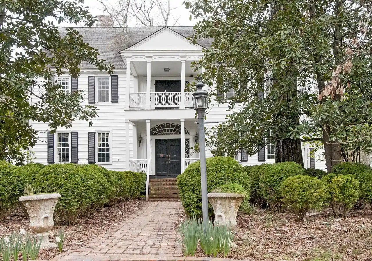 Cedar Grove is a historic plantation house located near Edgefield, Edgefield County, South Carolina. It was built between 1790 and 1805, and is a large two-story, Federal style house with a white clapboard exterior and high gable roof. It features a double-tiered portico with delicate Adamesque detail. This home has many unusual architectural features including a barrel-vaulted hallway, elaborately carved mantelpieces, and the right front parlor retains an early hand-painted French wallpaper. Read more on Wikipedia