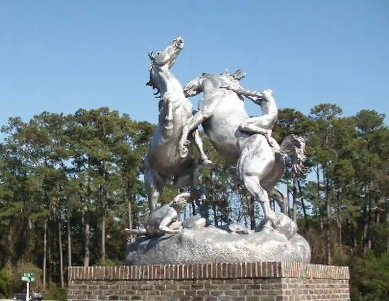 Brookgreen Gardens is a sculpture garden and wildlife preserve, located just south of Murrells Inlet, in the U.S. state of South Carolina. The property includes several themed gardens featuring American figurative sculptures, the Lowcountry Zoo, and trails through several ecosystems in nature reserves on the property. It was founded by Archer Milton Huntington, stepson of railroad magnate Collis Potter Huntington, and Anna Hyatt Huntington, his wife, to feature sculptures by Anna and her sister Harriet Randolph Hyatt Mayor, along with other American sculptors. Brookgreen Gardens was opened in 1932. It was developed on property of four former rice plantations, taking its name from the former Brookgreen Plantation, which dates to the antebellum period. Read more on Wikipedia