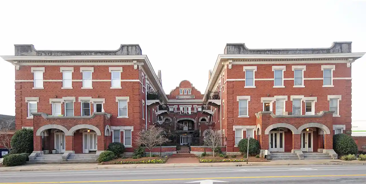 Davenport Apartments is a historic apartment building located at Greenville, South Carolina. It was built in 1915–1916, and is a three-story, U-shaped, brick building. It consists of a large rectangular section in the rear with two smaller wings that extend from the rear block to the street. The front façade features two one-story porches with stone elliptical arches and brick pillars. Read more on Wikipedia