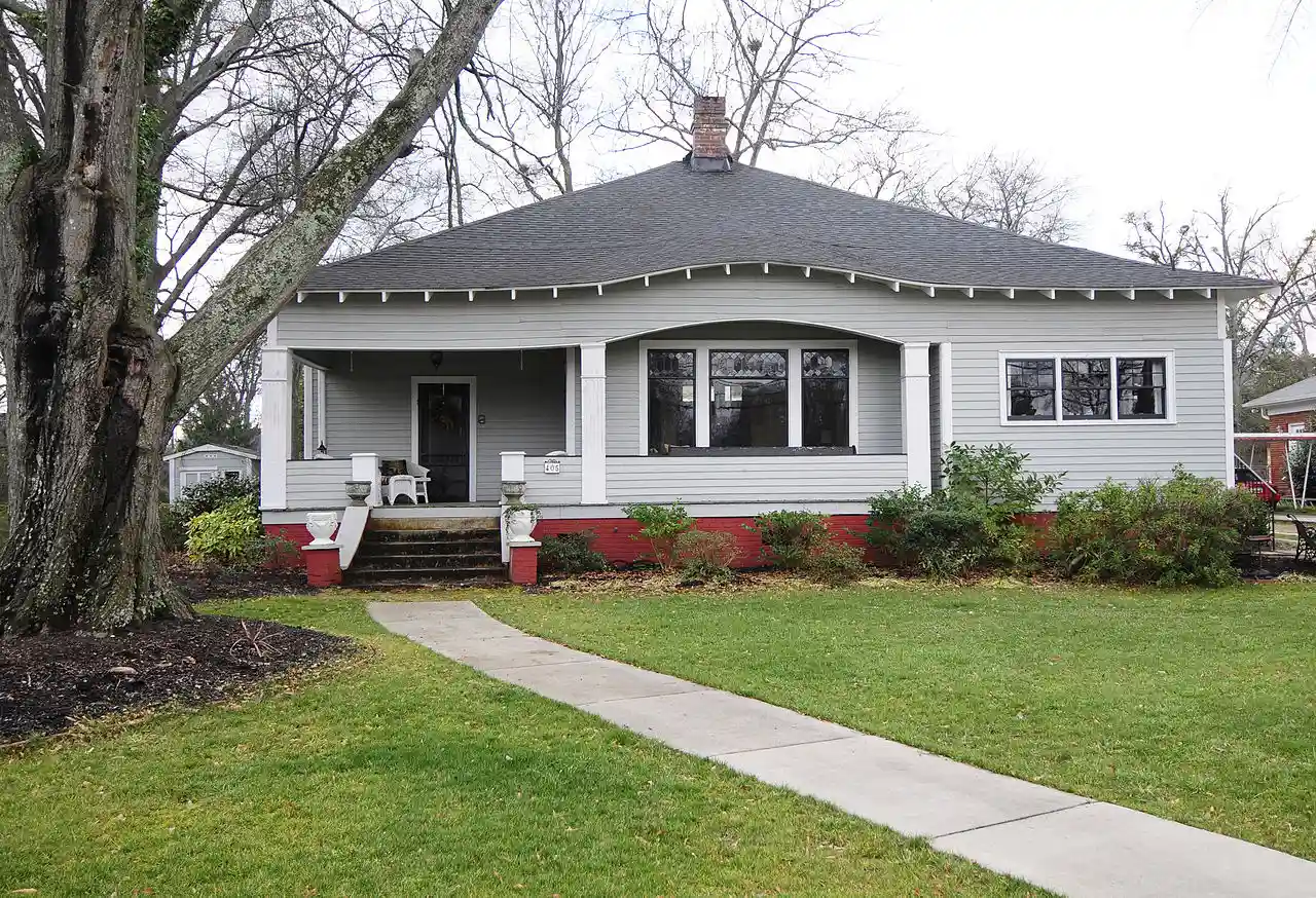 The F. W. Welborn House is located in Fountain Inn, South Carolina. The one-story Craftsman style bungalow was built in 1914 for Frank W. Welborn. It was one of the first houses in the city and is one of the most representative residential examples of the Craftsman style in the city. Read more on Wikipedia