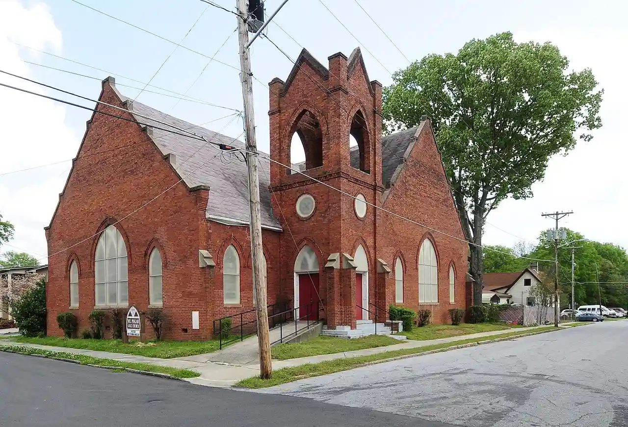 Mt. Pisgah A. M.E. Church is a historic African Methodist Episcopal church located at Hackett Avenue and James Street in Greenwood, Greenwood County, South Carolina. It was built in 1908, and is a brick Gothic Revival-style church. It features a steep, cross-gabled roof with stepped end gables, asymmetrical massing, and pointed stained glass windows. Read more on Wikipedia