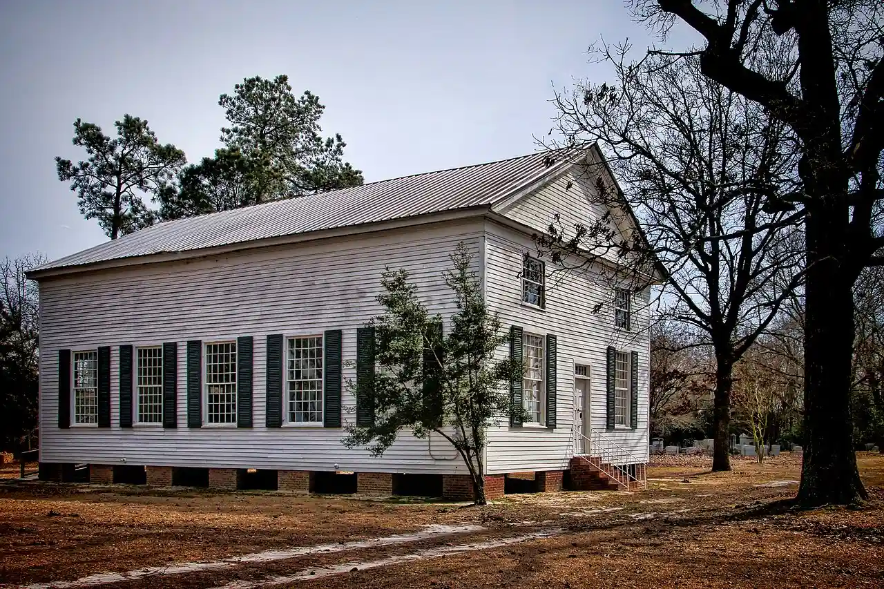 Rembert Church, also known as Rembert Methodist Church, is a historic Methodist church located near Woodrow, Lee County, South Carolina. It was built about 1835, and is a plain meeting house style rectangular building with clapboard siding. The adjacent cemetery was established in 1800. It is one of the earliest Methodist congregations in South Carolina, with a Methodist Society meeting as early as 1785. In its early days it was frequently visited by Francis Asbury, the first Bishop of the Methodist Church of the United States. Read more on Wikipedia