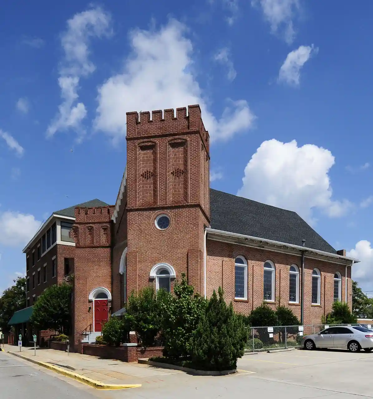 Ladson Presbyterian Church is a historic African American Presbyterian church located at 1720 Sumter Street in Columbia, South Carolina. The religious building was initially a chapel founded in 1838 and, rebuilt in 1896, and is a one-story-over-raised-basement, rectangular red brick building in the Renaissance Revival style. It has a front gable roof and features two brick entrance towers. The congregation was founded in 1838, as an offshoot congregation of the First Presbyterian Church. Read more on Wikipedia