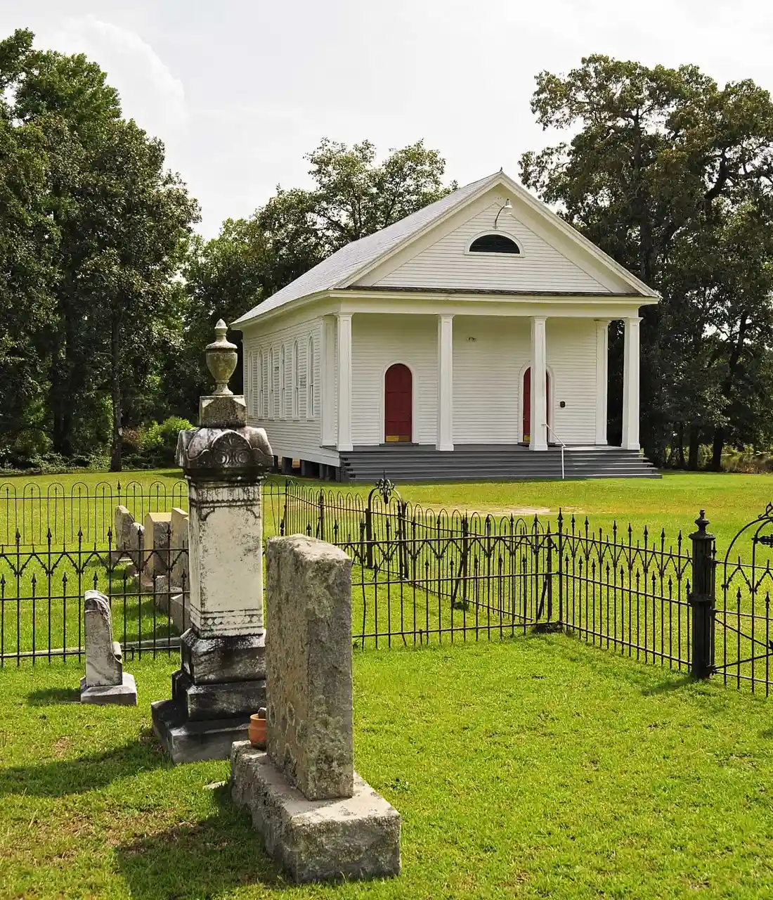 Spann Methodist Church and Cemetery is a historic Methodist church and cemetery located at 150 Church Street in Ward, Saluda County, South Carolina. The church was established and built in 1873. Unchanged since building, it is a one-story, frame meeting house form church with Greek Revival style elements. The front facade features an engaged tetrastyle portico with a pedimented gable roof. The cemetery was established about 1842, and includes a significant collection of funerary art dating to the late-19th and early-20th centuries. Read more on Wikipedia