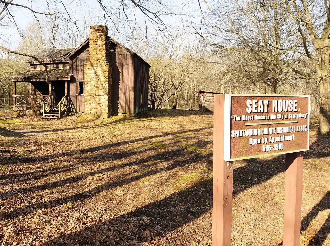 Jammie Seay House is a historic home located at Spartanburg, Spartanburg County, South Carolina. It was built between 1770–1800, and is one-story, log house with a loft, field stone foundation piers, gabled roof, and an end field stone chimney. It has a one-story "L" rear addition and a one-story lean-to front porch. It was built by Jammie Seay, a Revolutionary War soldier of the Second Virginia Infantry. It is believed to be the oldest house within the present limits of Spartanburg. Read more on Wikipedia
