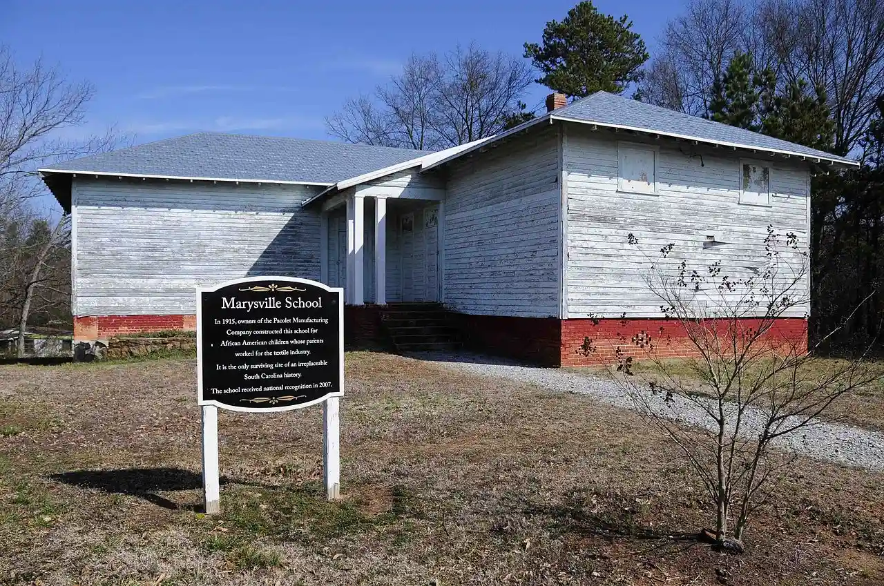 Marysville School is a historic school building located near Pacolet, Spartanburg County, South Carolina. It built in 1915 by the Pacolet Manufacturing Company to serve the African-American community of Marystown. It is a 1 1/2-story, three room school building in an "L" shape. The school closed in 1954. Read more on Wikipedia