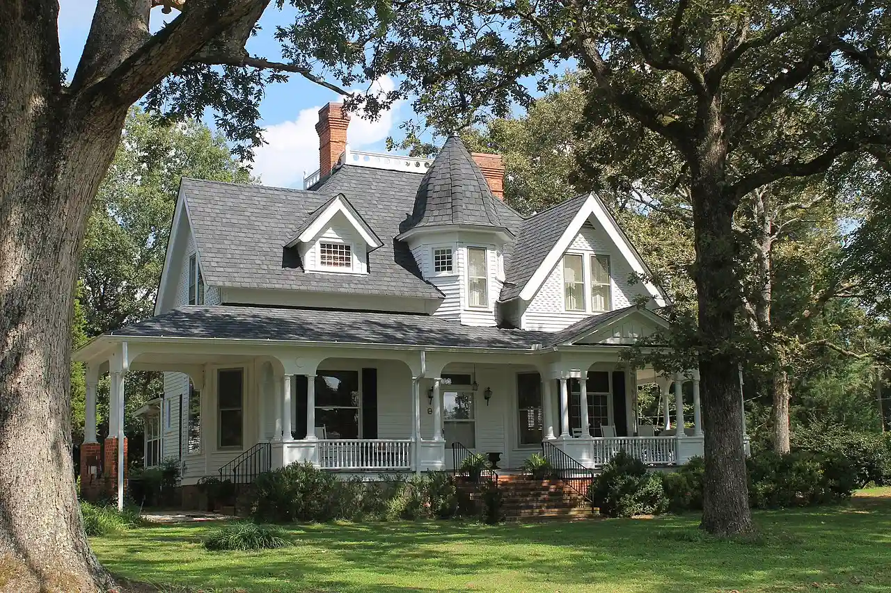 The William Dixon Fowler House was built around 1901 in Spartanburg County, South Carolina by William Dixon Fowler. The Queen Anne style house is believed to have been built from plans published by prolific residential architect George F. Barber. The wood-frame house features a high level of carpentry and detailing. The house's chief features are a wrap-around porch, a porte-cochere, and a second-story turret embedded in the slope of the main roof. A contemporaneous smokehouse is also considered a contributing feature. Read more on Wikipedia