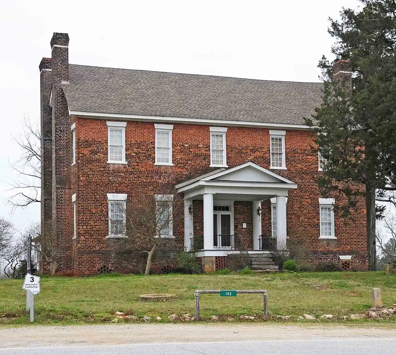 Cross Keys House is a historic plantation house located at Cross Keys, Union County, South Carolina. It was built about 1812–1814, and is a two-story, five-bay, brick Georgian Colonial style dwelling. It features a gabled roof with identical pairs of end chimneys, a massive raised first-story portico, and date stones carved with the date of the house's completion (1814), original owner's initials (B.B.), and crossed keys thought to be the insignia of the builder. Read more on Wikipedia