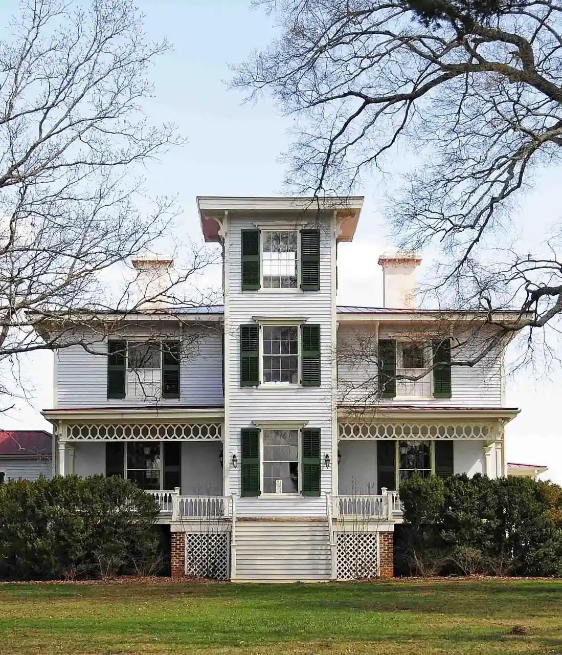 Hightower Hall (Forrest Hall) is a historic home located near McConnells, York County, South Carolina. Completed in 1856, Hightower Hall is a two-story, weatherboarded frame dwelling in a vernacular interpretation of the Italianate style. The front facade features a prominent three-story tower that rises ten feet above the main roof of the house. It also has a low-pitched roof, deep eaves, decorative brackets and verandahs. Also on the property are two barns and two slave cabins. Read more on Wikipedia