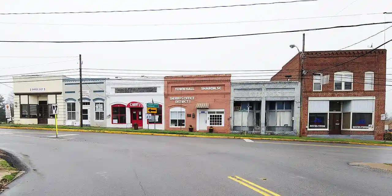 Sharon Downtown Historic District is a national historic district located at Sharon, York County, South Carolina. It encompasses nine contributing buildings in the central business district of Sharon. The buildings are predominantly masonry commercial buildings built between 1908 and 1944. The buildings are the First National Bank of Sharon, Shannon and Plexico Buildings, Love and Kennedy Buildings, Hope Building and Sims Hood Drugstore, and John S. Rainey Cotton Gin, Seedhouse and Office. and accompanying map Read more on Wikipedia