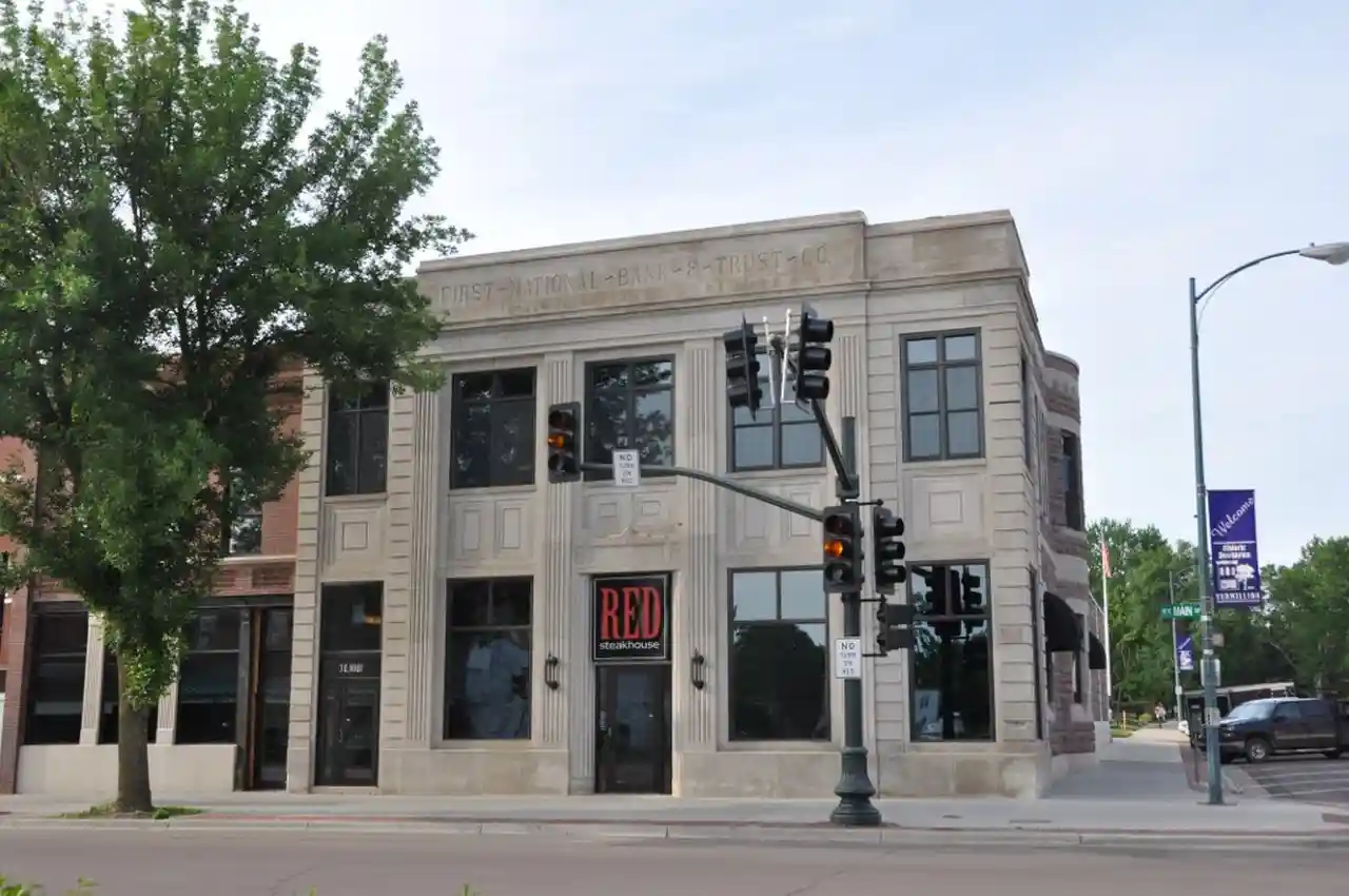 The First National Bank Building of Vermillion, also known as the Old Bank Building, is a historic building at 1 East Main Street in Vermillion, South Dakota. It was added to the National Register of Historic Places in 1986. Read more on Wikipedia