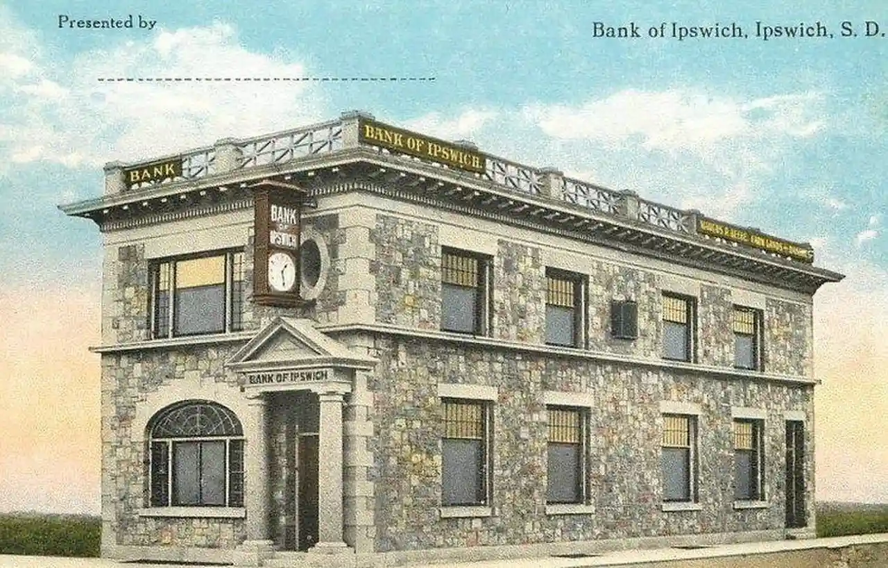 The Ipswich State Bank, located at 1st Ave. and Main St. in Ipswich, South Dakota, was built in 1905. It was listed on the National Register of Historic Places in 1978. Read more on Wikipedia