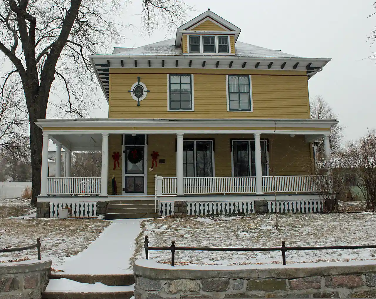 The I. W. Goodner House is a historic house located at 216 E. Prospect Avenue in Pierre, South Dakota. The house, one of the oldest in Pierre, was built between 1881 and 1885 for I. W. Goodner, the first clerk of the South Dakota Supreme Court. While the house was built with a Gothic Revival design, Goodner remodeled the house in the 1900s, converting it to a Colonial Revival home. The renovated house featured a new second story and attic and a wraparound porch supported by Tuscan columns. Read more on Wikipedia