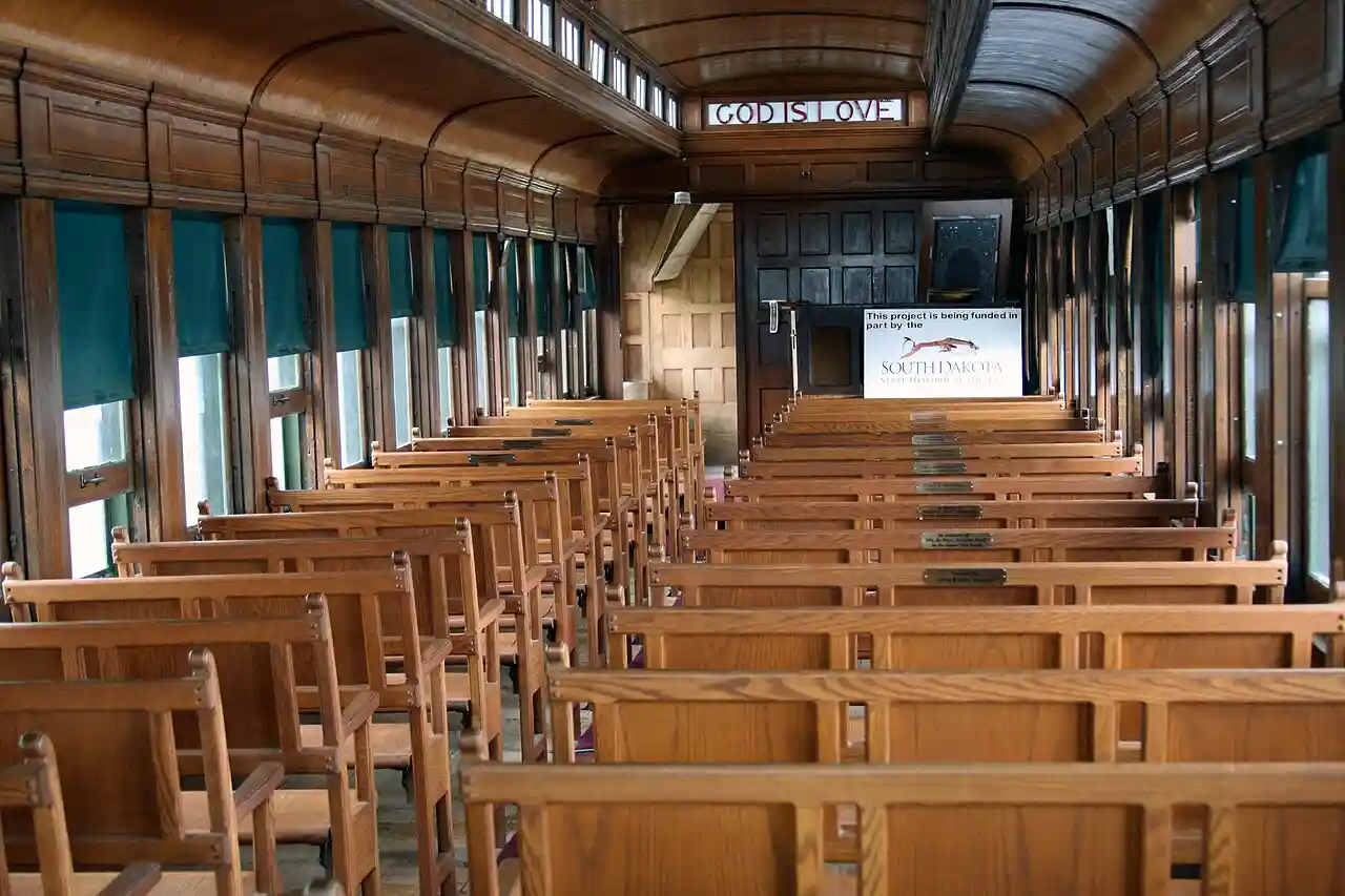 The Chapel Emmanuel Railroad Car was one of thirteen railroad cars used as chapels in the United States starting about 1890. Seven of the cars were built by the Barney and Smith Car Company of Dayton, Ohio and travelled from town to town, mainly in the sparsely populated western states and territories, under the direction of the American Baptist Publication Society. Read more on Wikipedia