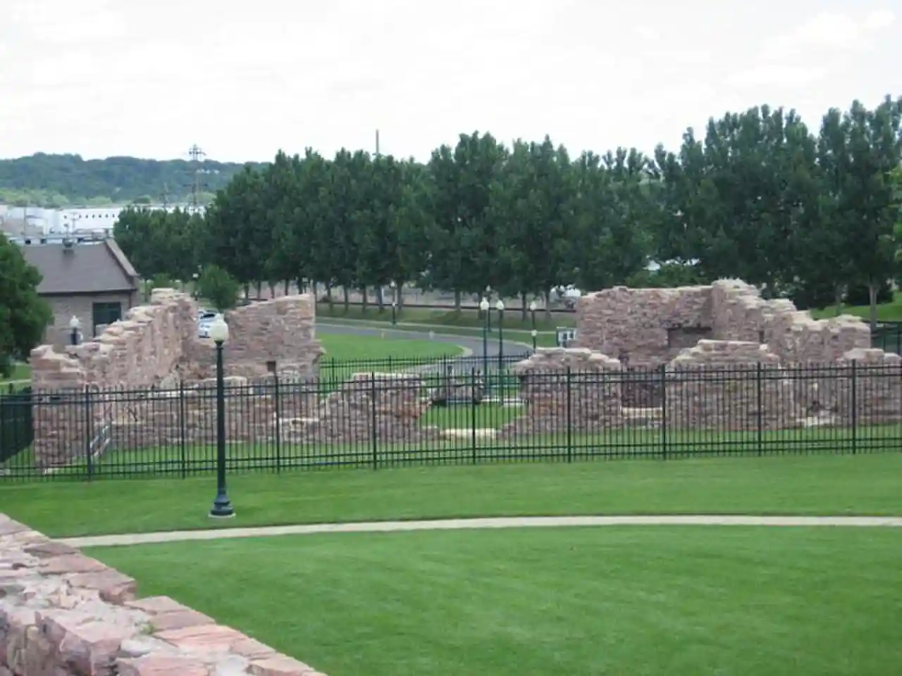 The Queen Bee Mill is a ruined mill complex located in Falls Park in Sioux Falls, South Dakota. Opened in 1881, the mill operated intermittently for several different owners during the late nineteenth and early twentieth centuries. A 1956 fire led to the site's demolition, leaving the ruins that stand today. The mill site is listed on the National Register of Historic Places. Read more on Wikipedia