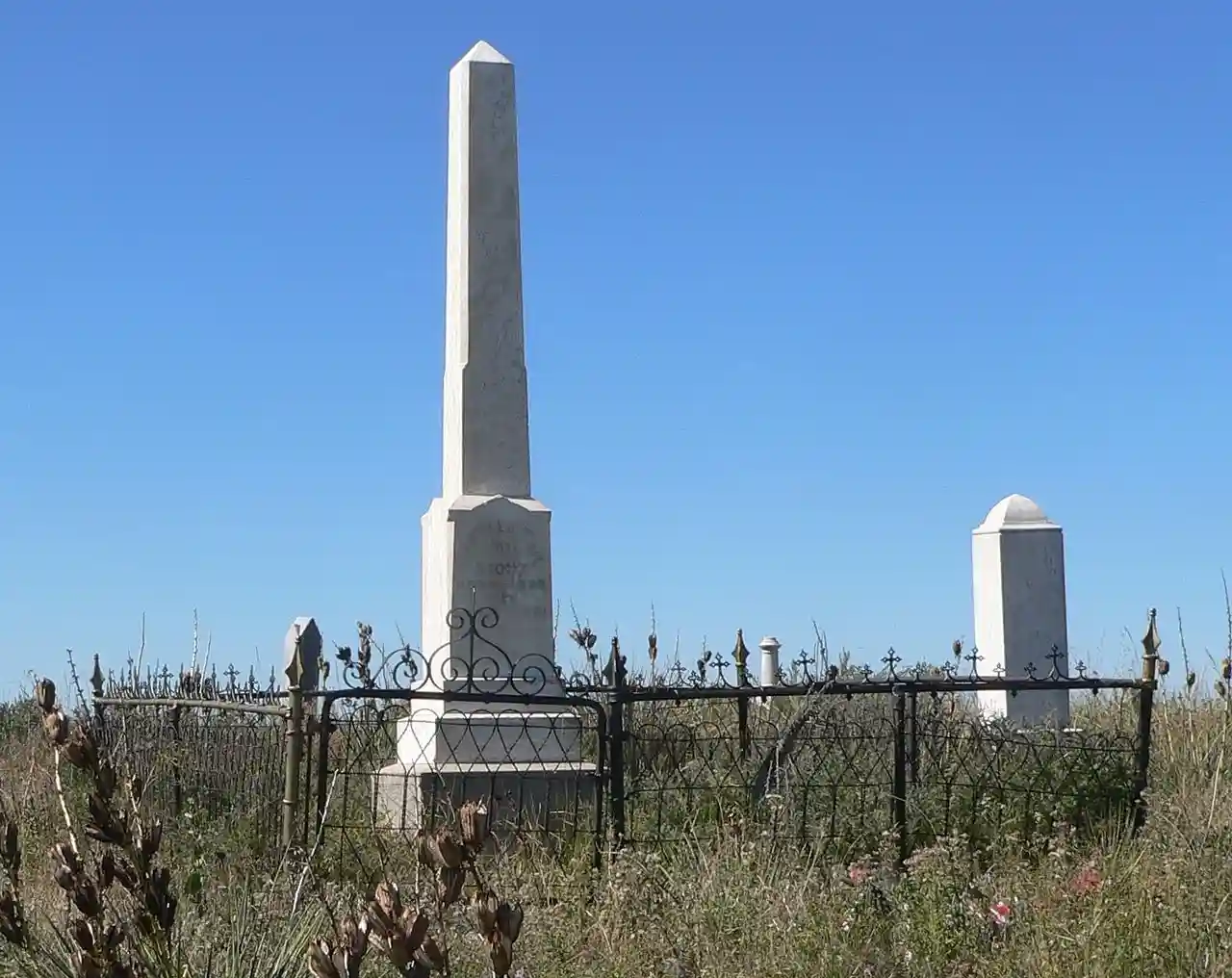 The gravesite of the Brulé Lakota chief Spotted Tail stands outside an Episcopal cemetery on the outskirts of Rosebud, South Dakota, the government center of the Rosebud Indian Reservation. It is marked by a stone obelisk which is engraved "Spotted Tail", Chief of the Sioux (Born 1823, Died Aug. 5, 1881). The plot is surrounded by a wrought iron fence. It is significant as the only site associated with Spotted Tail's life. Spotted Tail was chosen to lead the Brulé when they were first confined to the reservation, and was an influential figure in the tribal politics of the 1870s. His gravesite was listed on the National Register of Historic Places in 1980. Read more on Wikipedia
