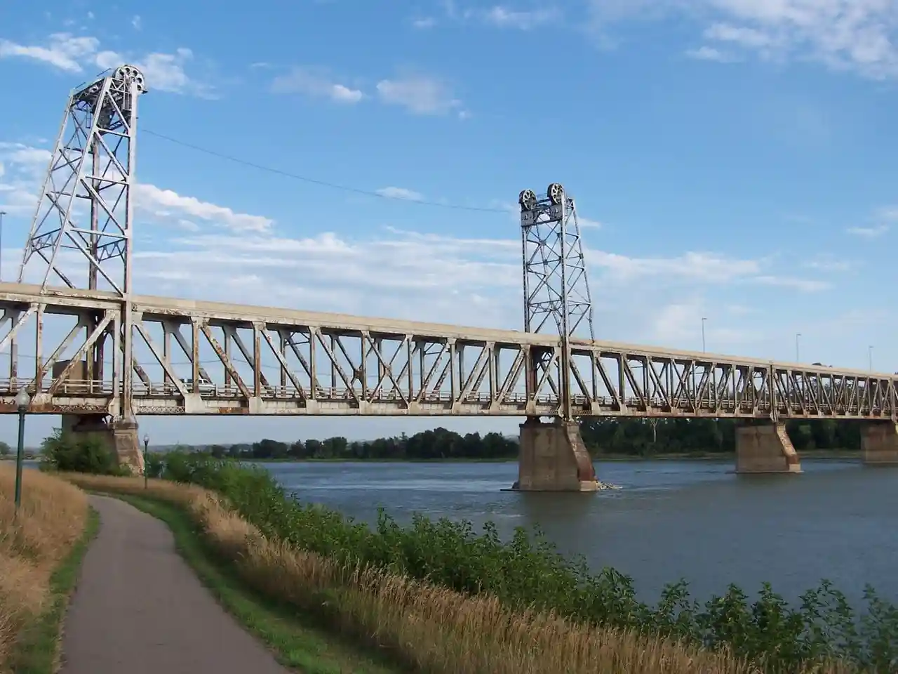 The Meridian Highway Bridge is a bridge that formerly carried U.S. Route 81 across the Missouri River between Nebraska and South Dakota. The Meridian Highway Bridge connects Yankton, South Dakota with rural Cedar County, Nebraska. The Meridian Bridge is a double-deck bridge, with the top level having carried traffic into South Dakota from Nebraska, and the lower level having carried traffic into Nebraska from South Dakota. It was closed to all traffic in 2008, but reopened for use only by pedestrians and bicycles in 2011. Read more on Wikipedia