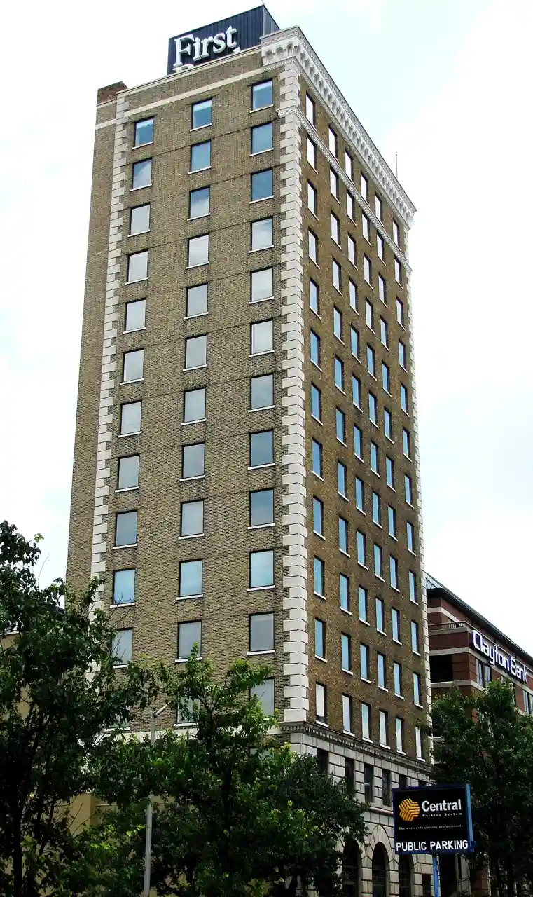 The General Building, also called the Tennessee General Building or the First Bank Building, is an office high rise located in downtown Knoxville, Tennessee. Constructed in 1925, the 14-story building is the only high rise designed by Charles I. Barber, and has over the years housed the offices of dozens of banks, physicians, and various financial and architectural firms. The Lexington, Tennessee-based First Bank is the current anchor tenant. In 1988, the General Building was listed on the National Register of Historic Places for its architecture and its role in Knoxville's commercial history. Read more on Wikipedia