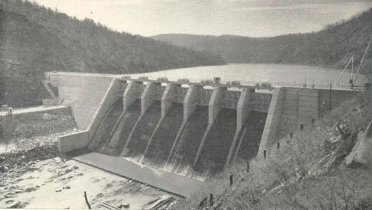 Ocoee Dam No. 3 is a hydroelectric dam on the Ocoee River in Polk County, in the U.S. state of Tennessee. It is one of four dams on the Toccoa/Ocoee River owned and operated by the Tennessee Valley Authority, which built the dam in the early 1940s to meet emergency demands for electricity during World War II. The dam impounds the Ocoee No. 3 Reservoir, which stretches upriver to the Tennessee-Georgia state line.Tennessee Valley Authority, Ocoee Reservoir No. 3. Retrieved: 23 January 2009. Ocoee No. 3's powerhouse is actually located several miles downstream from the dam, and is fed by a conduit that carries water to it from the reservoir.Tennessee Valley Authority, The Hiwassee Valley Projects Volume 2: The Apalachia, Ocoee No. 3, Nottely, and Chatuge Projects, Technical Report No. 5 (Washington, D.C.: U.S. Government Printing Office, 1948), pp. 1-13, 40, 47, 63, 295, 494. Read more on Wikipedia