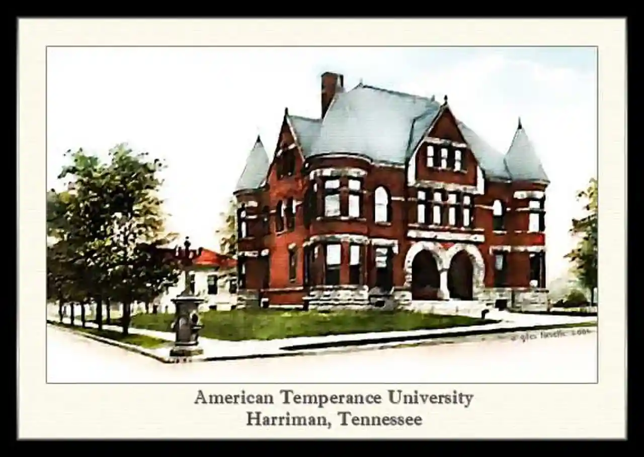American Temperance University opened in 1893 in the planned town of Harriman, Tennessee, which was developed as a community with no alcoholic beverages permitted. In its second year of operation the institution enrolled 345 students from 20 states. However, it closed in 1908. Those who attended included two students who later became members of the U.S. House of Representatives, John Jennings, Jr.John Jennings, Jr., Biographical Directory of the United States Congress and James Willis Taylor. Read more on Wikipedia