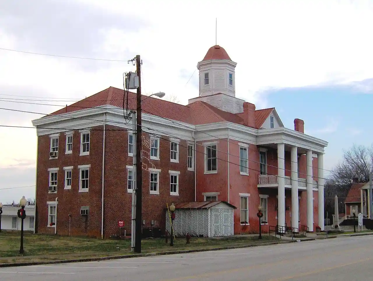The old Roane County Courthouse building in Kingston, Tennessee, the county seat of Roane County. Built in the 1850s, it is one of six remaining antebellum county courthouses in the state of Tennessee. Read more on Wikipedia