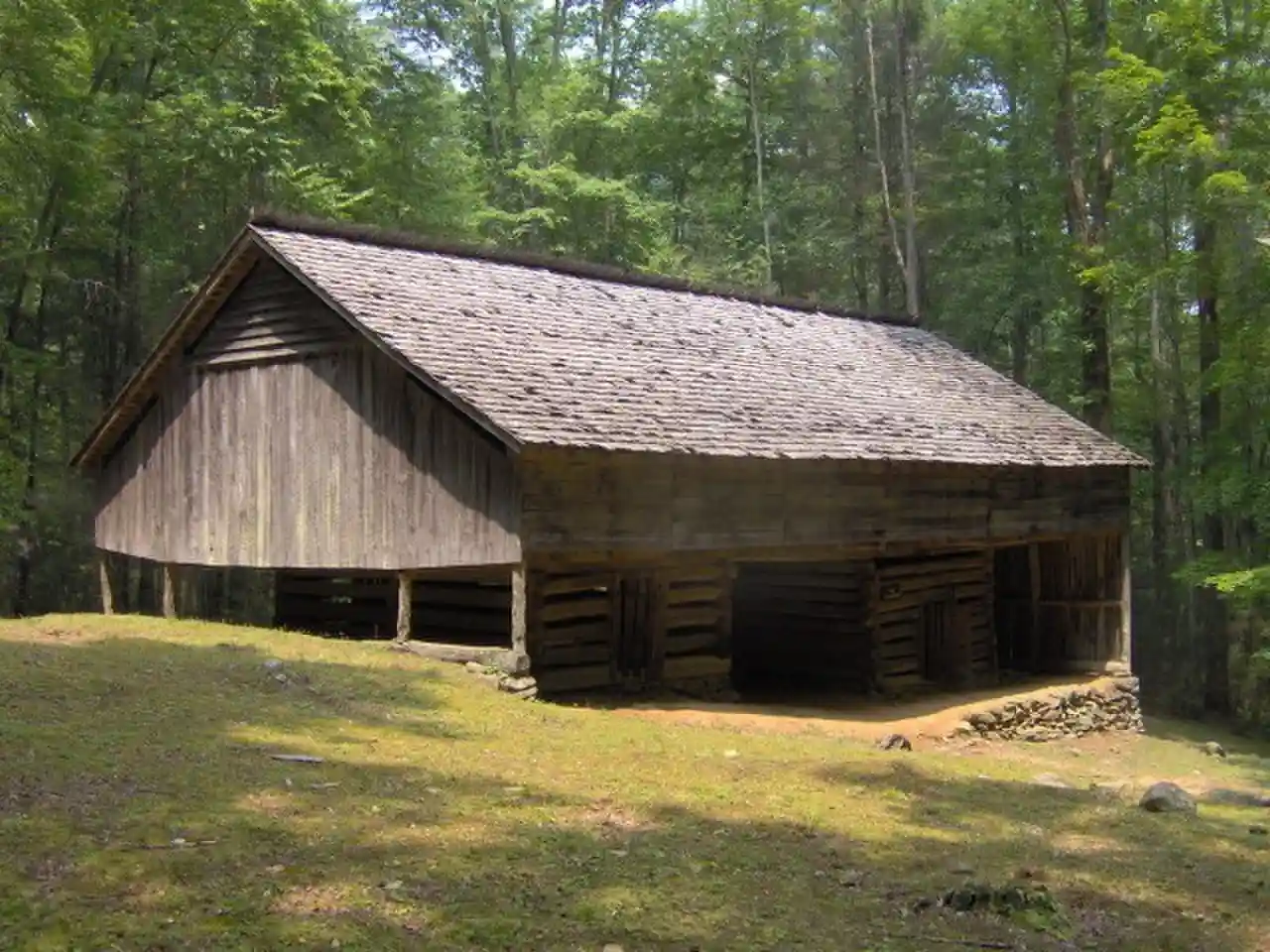 The John Messer Barn is a historic structure within the Great Smoky Mountains National Park in Sevier County, Tennessee, United States. Located along the Porters Creek Trail in the Greenbrier valley, it was constructed in 1875 by Pinkney Whaley. The Whaleys later sold their farm to John H. Messer, who was married to Pinkney's cousin, Lucy. Read more on Wikipedia