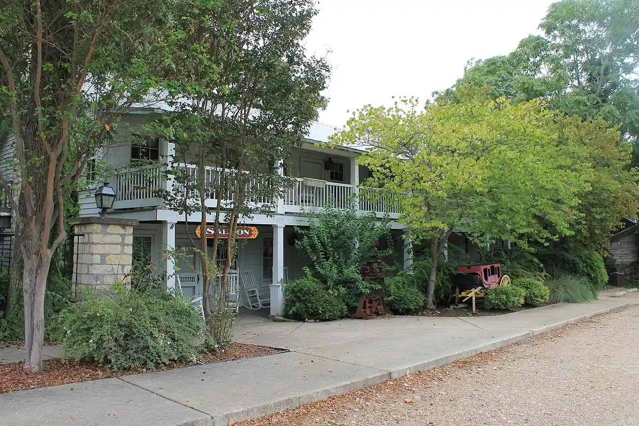 Built starting in 1852, the Stagecoach Inn of Salado, Texas, is thought to be the oldest extant structure in the village. The Inn was built as a stagecoach stop along the Chisholm Trail. The simple, two-story wood-frame building is in a frontier vernacular style. The structure was extended several times in the 1940s and 1950s to serve as a restaurant. The inn was listed on the National Register of Historic Places in 1983. The inn has also been a member of Historic Hotels of America, the official program of the National Trust for Historic Preservation, since 2018., although its current name with the organization is the "Shady Villa Hotel." Read more on Wikipedia