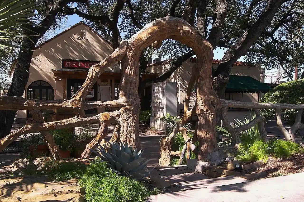 The Fence at Alamo Cement Company is a Faux Bois sculpture by artist Dionicio Rodriguez. The sculpture is a 125-foot-long concrete faux wood fence laid out in approximately a āCā shape and features an elaborate entrance way formed by two sculpted tree trunks. The sculpture was posted to the National Register of Historic Places on August 9, 2005. Read more on Wikipedia