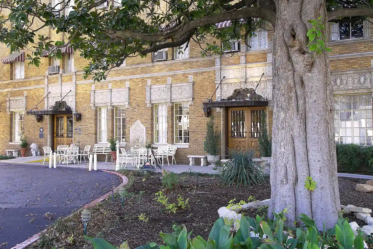 The Faust Hotel, once known as the Travelers Hotel, was completed in 1929 and is located in New Braunfels, Texas. The hotel planning was started by a group of citizens desiring to attract tourist and convention traffic to counter a downturn in agricultural business caused by a mid-1920s drought in the area. Built on donated land from Senator Joseph Faust's estate, the hotel was renamed in 1936 in honor that family. The building is a four-story masonry design of no particular architectural style, though with some Spanish Renaissance Revival detailing. Read more on Wikipedia