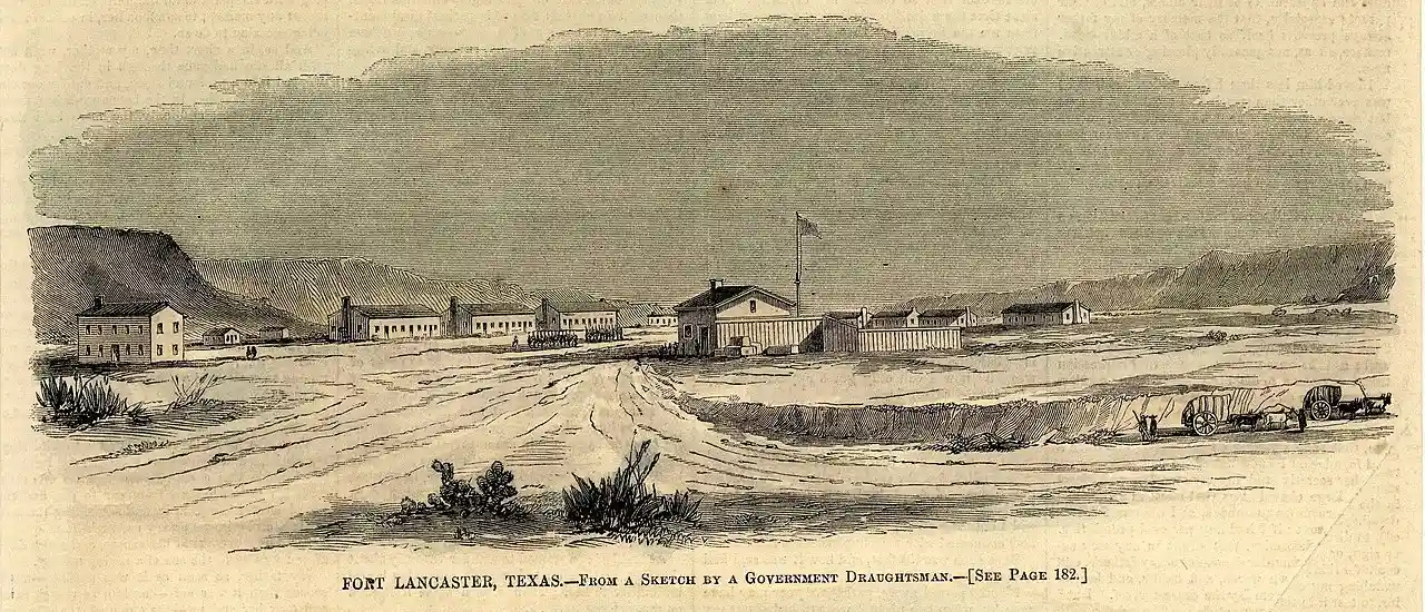 Fort Lancaster is a former United States Army installation located near Sheffield, Texas. The fort was established in 1855 on the San Antonio–El Paso Road to protect migrants moving toward California through Texas. The US Army occupied Fort Lancaster until Texas seceded from the United States in March 1861 and were replaced at the fort by forces loyal to the Confederate States of America. The Confederate Army held the fort from November 1861 until April 1862, when it was again abandoned and then burned. Read more on Wikipedia