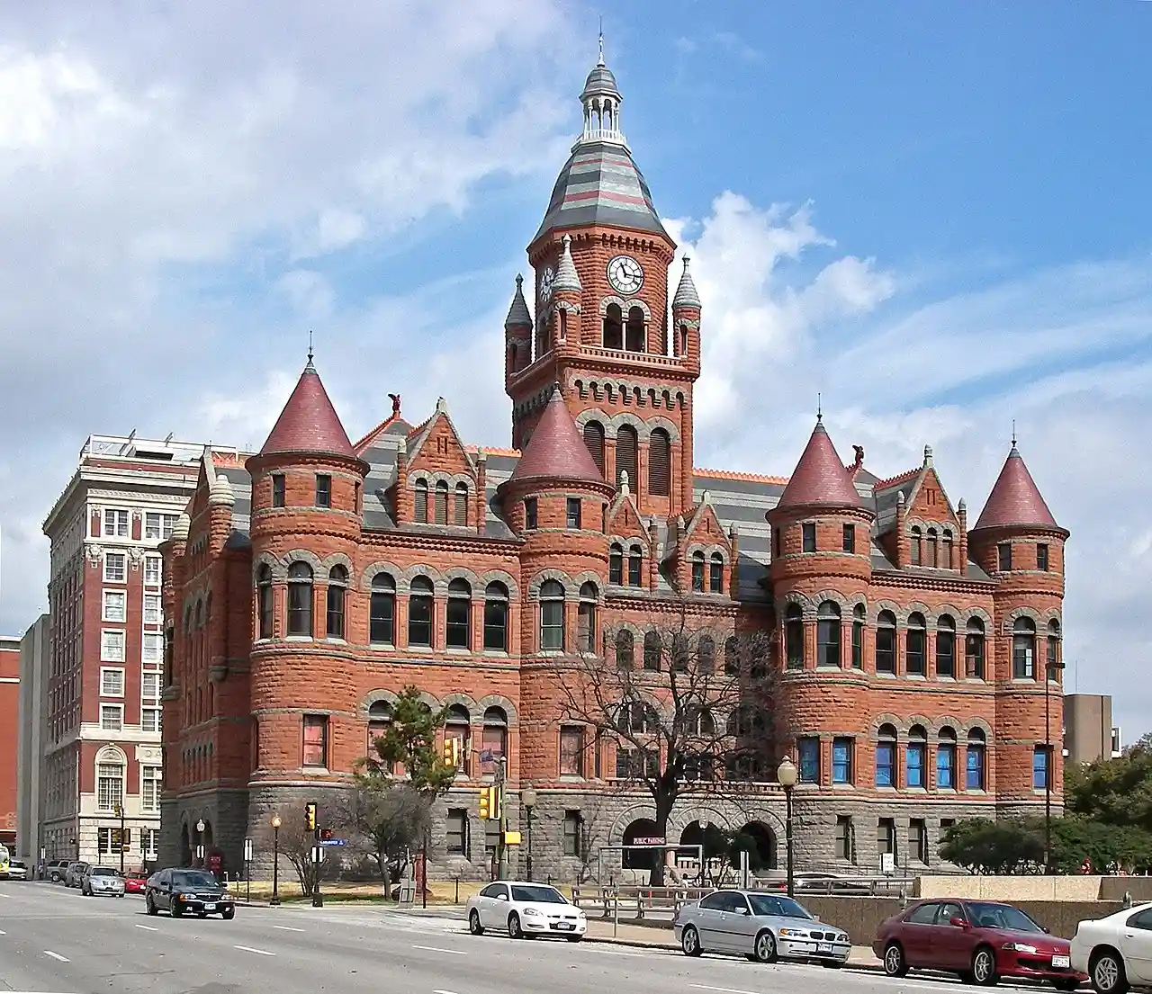 The Dallas County Courthouse, built in 1892 of red sandstone with rusticated marble accents, is a historic governmental building located at 100 South Houston Street in Dallas, Texas. Also known as the Old Red Courthouse, it became the Old Red Museum, a local history museum, in 2007. It was designed in the Richardsonian Romanesque style of architecture by architect Max A. Orlopp, Jr. of the Little Rock, Arkansas based firm Orlopp & Kusener. President John F. Kennedy's motorcade passed the courthouse minutes before his assassination on November 22, 1963. In 1966, the courthouse was replaced by a newer building nearby. On December 12, 1976, it was added to the National Register of Historic Places. In 2005–2007 the building was renovated.Texas Escapes: Texas Courthouses: Dallas CountyOld Red Courthouse Read more on Wikipedia