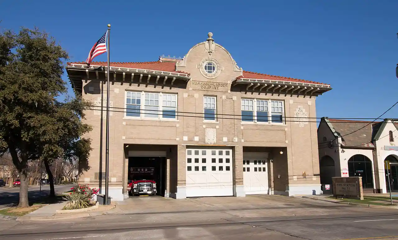 The Number 4 Hook and Ladder Company in Dallas, Texas, located at Cedar Springs Rd. and Reagan St., was built in 1909. It has also been known as the Oak Lawn Fire Station and as Fire Station No. 11. It was listed on the National Register of Historic Places in 1981. Read more on Wikipedia