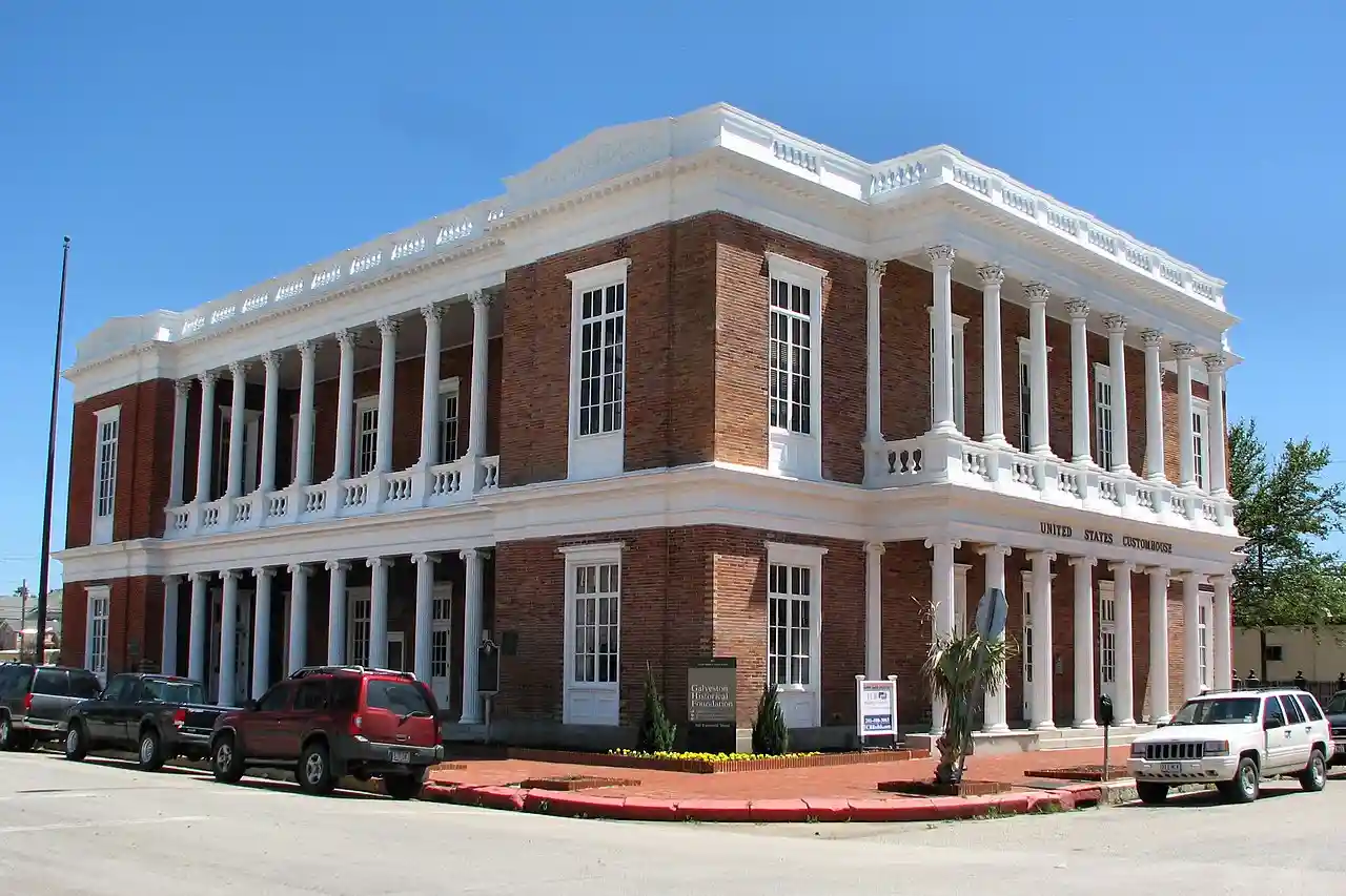 The United States Customs House and Court House, also known as Old Galveston Customhouse, in Galveston, Texas, is a former home of custom house, post office, and court facilities for the United States District Court for the Eastern District of Texas, and later for the United States District Court for the Southern District of Texas. Completed in 1861, the structure is now leased by the General Services Administration to the Galveston Historical Foundation. The courthouse function was replaced in 1937 by the Galveston United States Post Office and Courthouse. Read more on Wikipedia