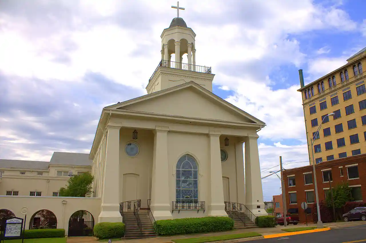 First Methodist Church (First United Methodist Church; Methodist Episcopal Church of South Marshall) is a historic Methodist church at 300 E. Houston Street in Marshall, Texas. It has also been known as First United Methodist Church and as Methodist Episcopal Church of South Marshall. It is a stuccoed brick Greek Revival-style church with a portico having four monumental square columns; such architecture is rare in Texas. Read more on Wikipedia
