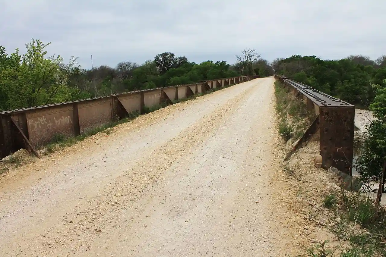 Nolan River Bridge is a single track girder bridge that crosses the Nolan River located in Blum, Texas. The bridge, constructed in stages between 1899 and 1903, was used for railroad traffic until 1952, after which it was used as for vehicular traffic. Read more on Wikipedia