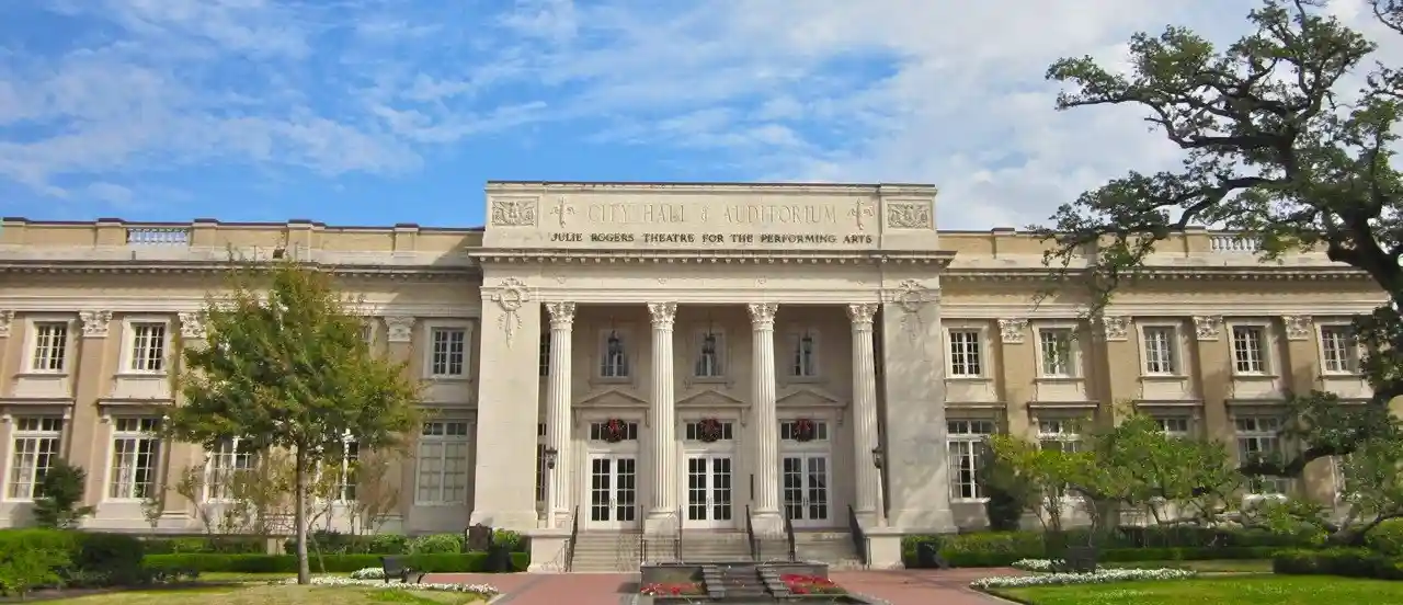 The Julie Rogers Theatre is a historic performing arts theatre located on Pearl Street in downtown Beaumont, Texas. Built in 1928, the theatre was once Beaumont's City Hall and Auditorium. The capacity is approximately 1,663 seats. Read more on Wikipedia