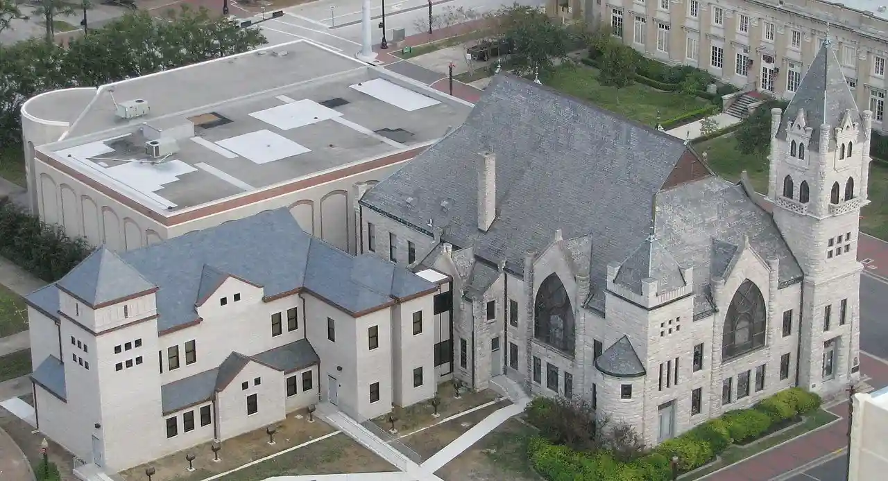 The Tyrrell Historical Library is a public library in Beaumont, Texas. Originally built in 1903 to serve as the First Baptist Church, the building displays a mix of Richardsonian Romanesque and Victorian Gothic architectures, with pointed arch windows and quatrefoils, and all of its original stained glass. The building became vacant in 1923 when the congregation moved to a new location. It was bought by Captain W. C. Tyrrell, who donated the building to the city for use as its first public library. The building is listed in the National Register of Historic Places and also as a Recorded Texas Historic Landmark.http://beaumontmainstreet.com/pdf/promo/tour.pdf It is also a contributing property to the Downtown Historic District. Read more on Wikipedia