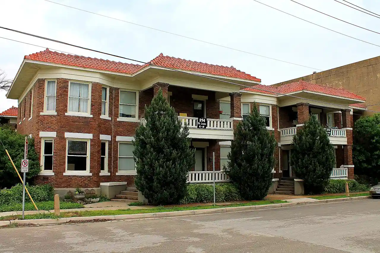 Markeen Apartments is located in the Near Southside of Fort Worth, Texas. The apartments sit on two lots at the northwest corner of Daggett and St. Louis avenues. The two-building complex was constructed in 1910 and designed in the Prairie School Style. It was built by Charles W. Forbes. The complex was purchased in 1999 and renovated. It was listed on the National Register of Historic Places on May 2, 2001. Read more on Wikipedia