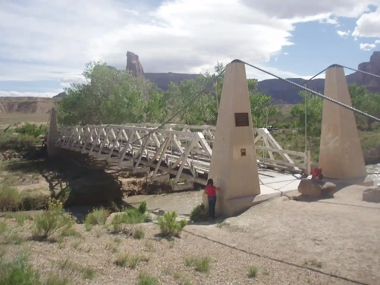 The San Rafael Bridge (also known as the San Rafael Swinging Bridge or the Buckhorn Wash Bridge) is a historic suspension bridge over the San Rafael River in central Emery County, Utah, United States, that is listed on the National Register of Historic Places (NRHP). Read more on Wikipedia