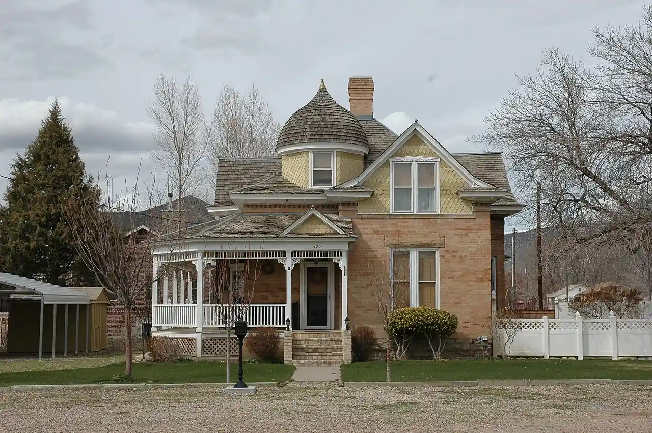 The Oscar M. Booth House, at 395 E. 100 South in Nephi, Utah, was built in 1893 with Queen Anne styling. It was listed on the National Register of Historic Places in 1983. Read more on Wikipedia
