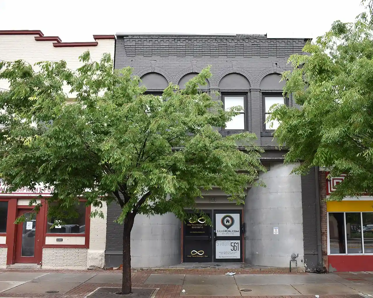 The Building at 561 West 200 South in Salt Lake City, Utah, is a 2-story brick commercial building constructed about 1910 in the city's ethnic Greek neighborhood. Four second floor windows are separated by brick pilasters below a wide, denticulated cornice. The windows form an arcade with a recessed, segmented horizontal course of brick at the springer level and with arches bisected by prominent, narrow keystones. The Building at 561 West 200 South was added to the National Register of Historic Places in 1982. With Read more on Wikipedia