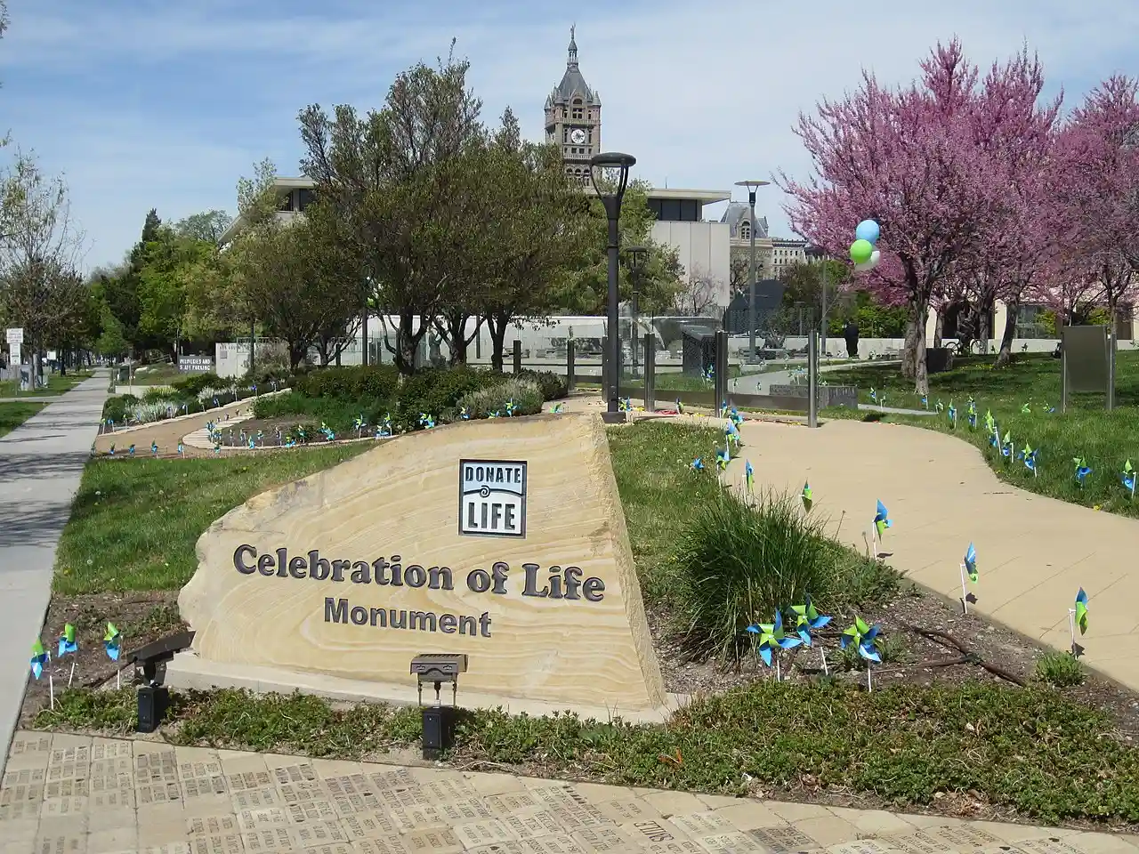 The Celebration of Life Monument is a visual art display in Salt Lake City, Utah, United States. The monument commemorates organ donors, and is located southeast of the Salt Lake City Public Library. Read more on Wikipedia