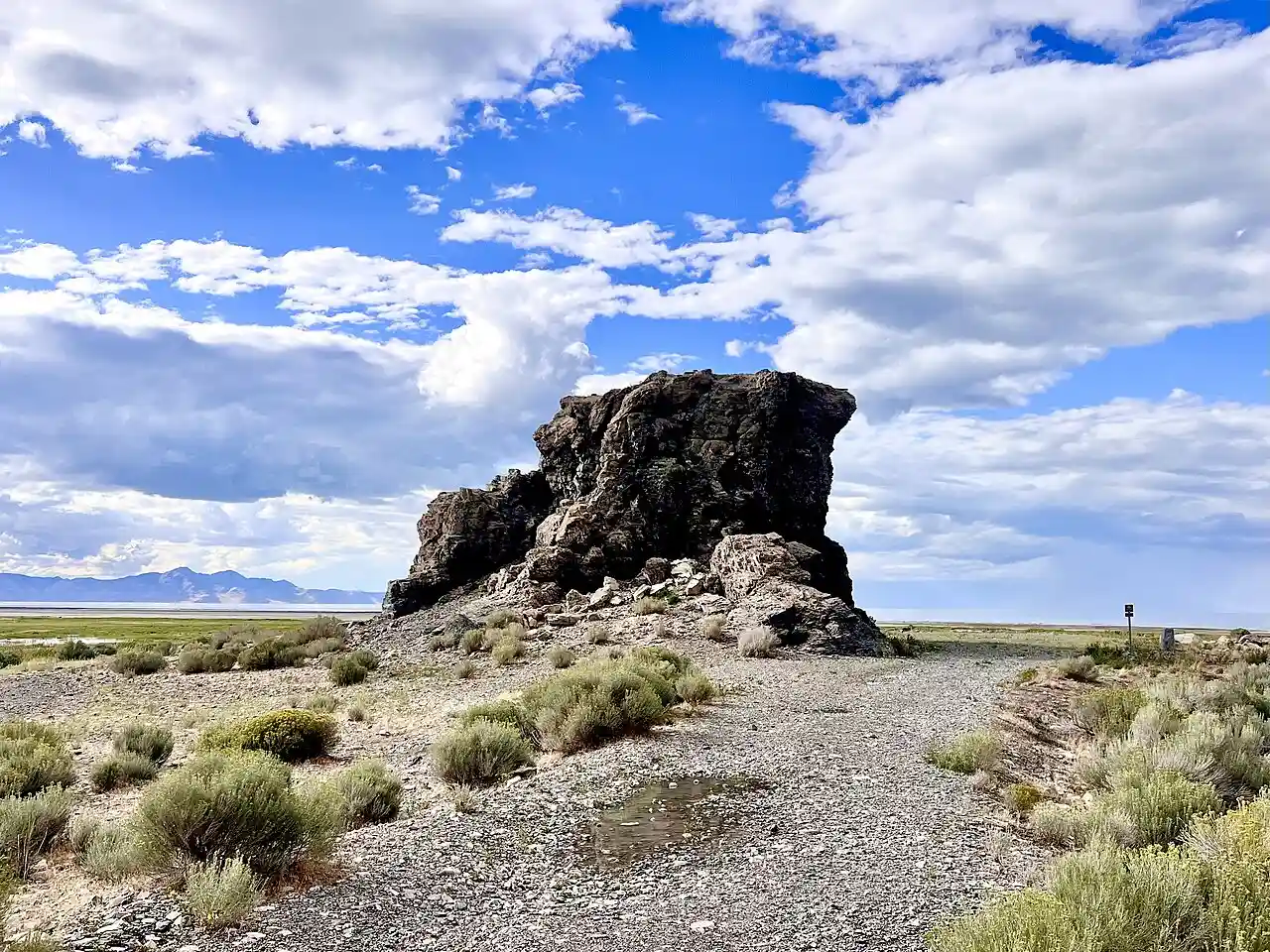 The Black Rock on Great Salt Lake near Lake Point, Utah is a historic landmark. It was added to the National Register of Historic Places in 2021 as part of the Black Rock Site. The site includes Black Rock and foundation ruins of the former Black Rock Resort. Read more on Wikipedia